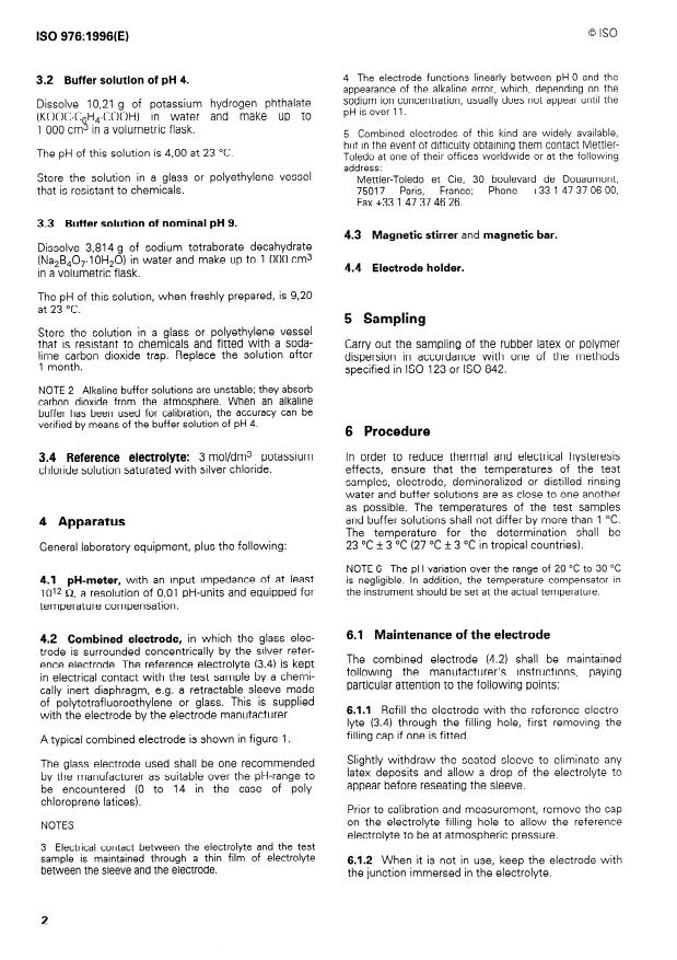 ISO 976:1996 - Rubber and plastics -- Polymer dispersions and rubber latices -- Determination of pH