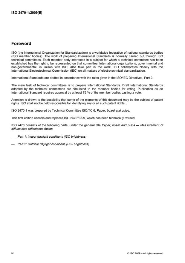 INTERNATIONAL STANDARD ISO2470-1First edition2009-10-01Paper, board and pulps — Measurement of diffuse blue reflectance factor — Part 1: Indoor daylight conditions (ISO brightness) Papier, carton et pâtes — Mesurage du facteur de réflectance diffuse dans le bleu — Partie 1: Conditions d'éclairage intérieur de jour (degré de blancheur ISO)