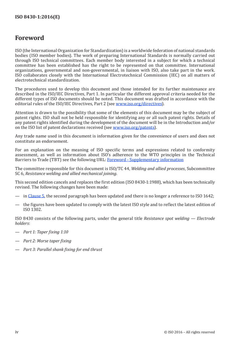 Keywords: ISO 8430-1:2016, resistance spot welding, electrode holders, taper fixing 1:10, dimensions and tolerances, welding equipment, electrode adaptor.