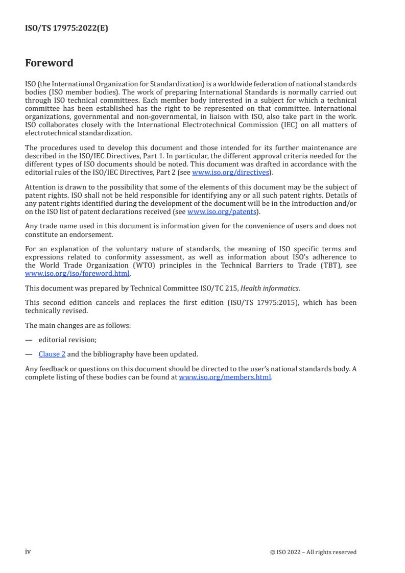 - Limitations: Does not prescribe data formats, how consent is recorded in specific EHR implementations, or specific security controls (see ISO/TS 14441:2013 and ISO 27799 for recording and security guidance).