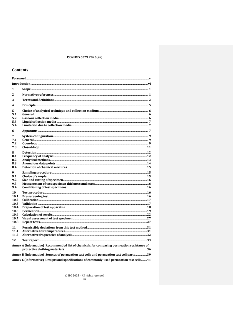REDLINE ISO/FDIS 6529 - Protective clothing — Protection against chemicals — Determination of resistance of protective clothing materials to permeation by liquids and gases Released:15. 09. 2025