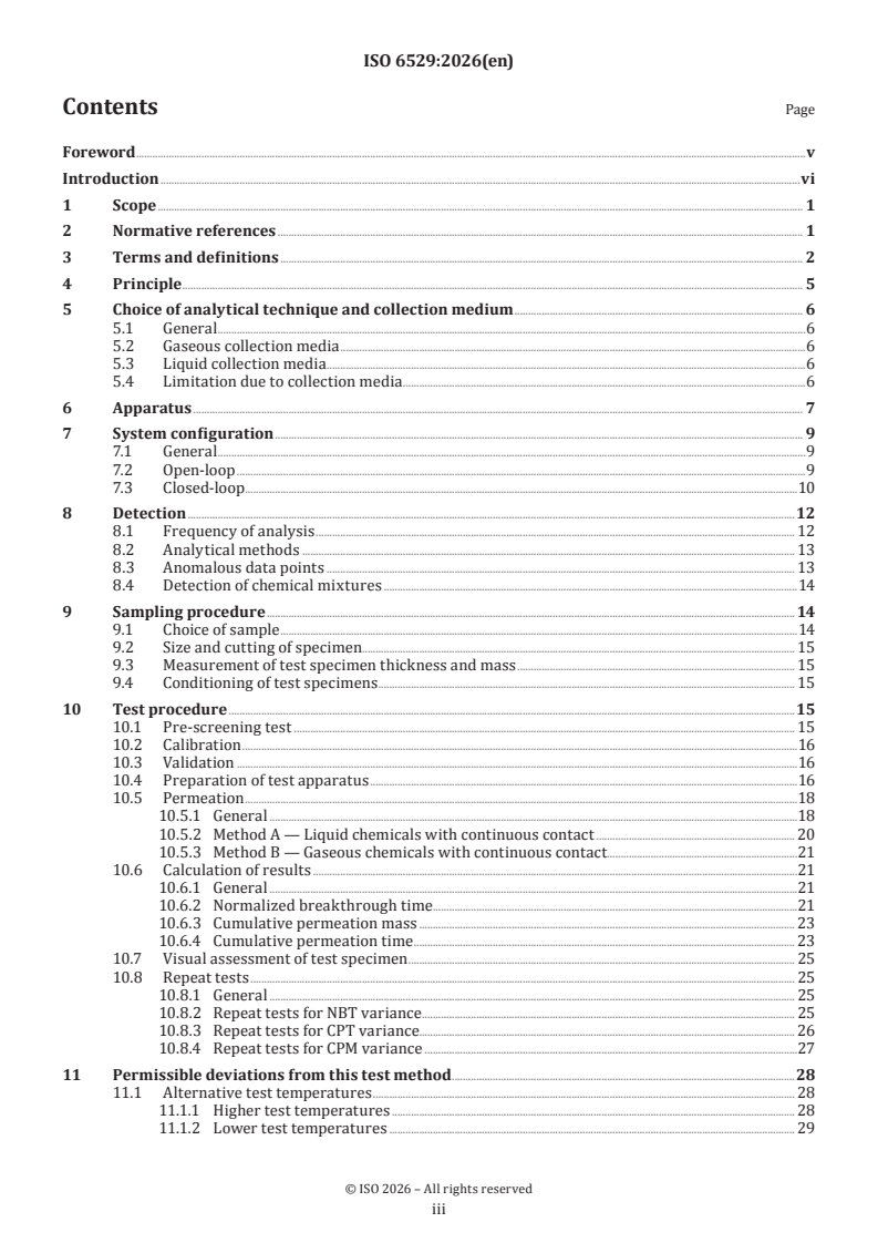 ISO 6529:2026 - Protective clothing — Protection against chemicals — Determination of resistance of protective clothing materials to permeation by liquids and gases Released:23. 01. 2026