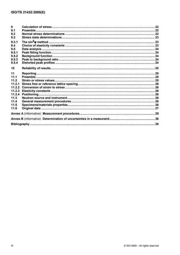 ISO/TS 21432:2005 is a technical specification published by the International Organization for Standardization (ISO). Its full title is "Non-destructive testing — Standard test method for determining residual stresses by neutron diffraction". This standard covers: ISO/TS 21432:2005 gives the standard test method for determining residual stresses in polycrystalline materials by neutron diffraction. It is applicable to homogeneous and inhomogeneous materials and to test pieces containing distinct phases.