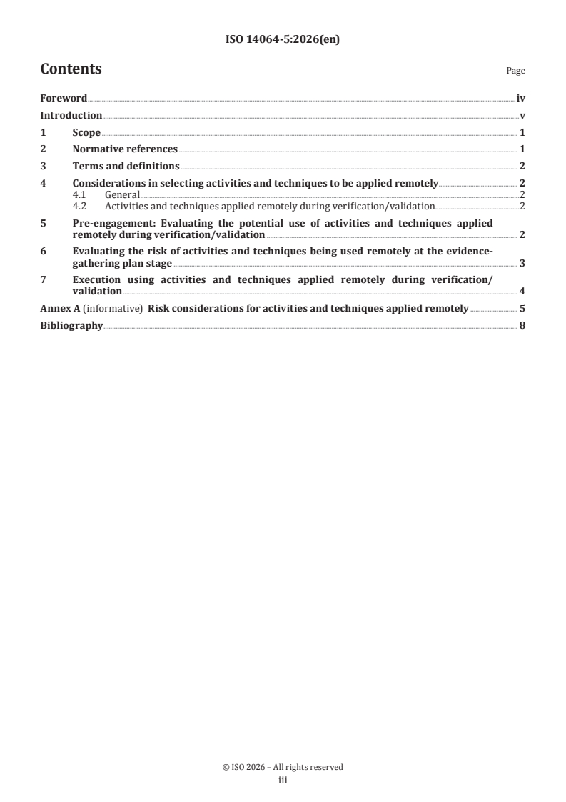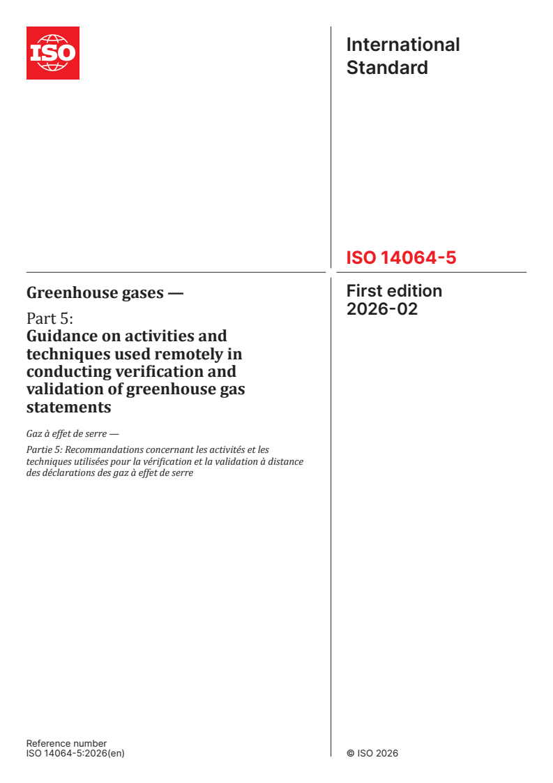ISO 14064-5:2026 - Greenhouse gases — Part 5: Guidance on activities and techniques used remotely in conducting verification and validation of greenhouse gas statements Released:2/12/2026
