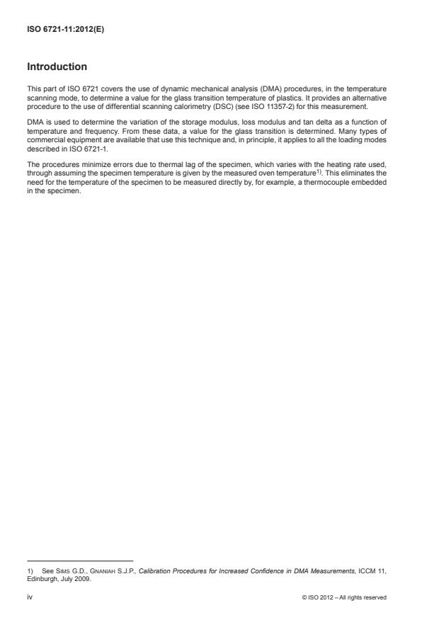 ISO 6721-11 was prepared by Technical Committee ISO/TC 61, Plastics, Subcommittee SC 2, Mechanical properties.