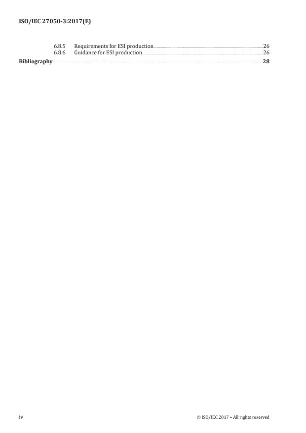 ISO/IEC 27050-3:2017 is a standard published by the International Organization for Standardization (ISO). Its full title is "Information technology — Security techniques — Electronic discovery — Part 3: Code of practice for electronic discovery". This standard covers: ISO/IEC 27050-3:2017 provides requirements and guidance on activities in electronic discovery, including, but not limited to, identification, preservation, collection, processing, review, analysis and production of electronically stored information (ESI). In addition, ISO/IEC 27050-3:2017 specifies relevant measures that span the lifecycle of the ESI from its initial creation through to final disposition. ISO/IEC 27050-3:2017 is relevant to both non-technical and technical personnel involved in some or all of the electronic discovery activities. It is important to note that the requirements and guidance are not intended to contradict or supersede local jurisdictional laws and regulations and it is expected that care is exercised by the user to ensure compliance with the prevailing jurisdictional requirements.