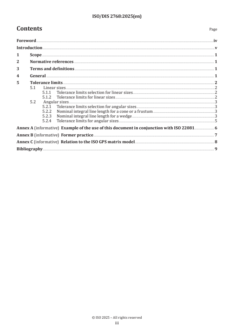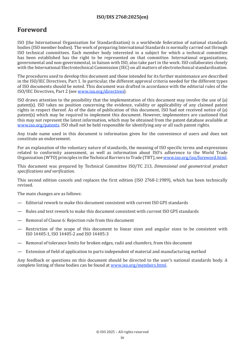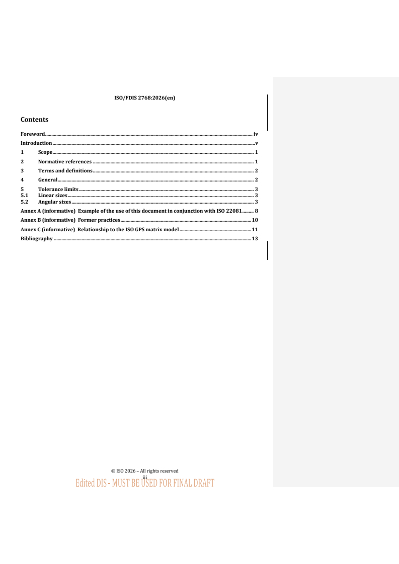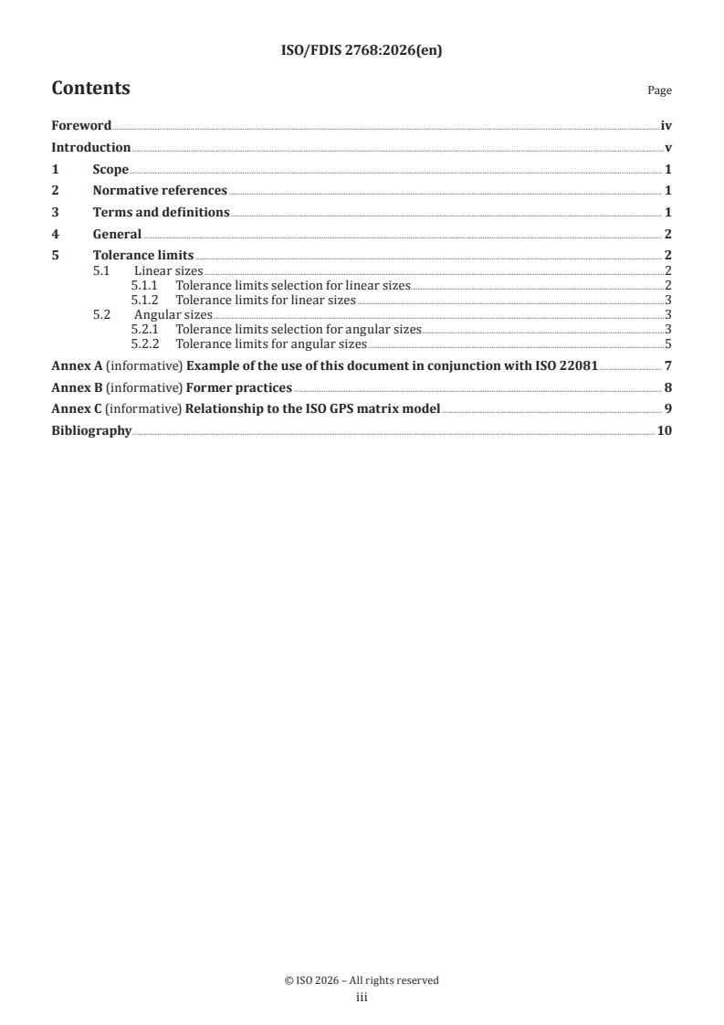ISO/FDIS 2768 - Geometrical product specifications (GPS) — Dimensional tolerancing — Tolerance limits for general specification of linear and angular sizes/30/2025