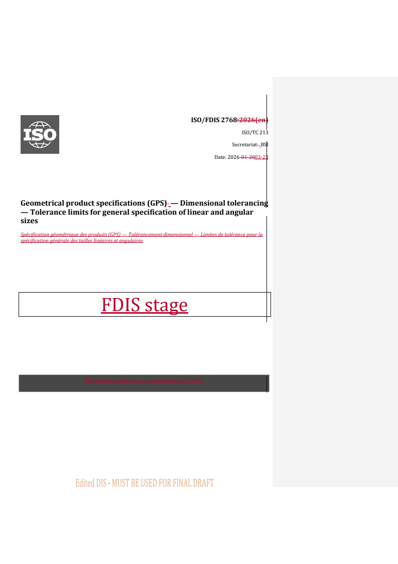 REDLINE ISO/FDIS 2768 - Geometrical product specifications (GPS) — Dimensional tolerancing — Tolerance limits for general specification of linear and angular sizes