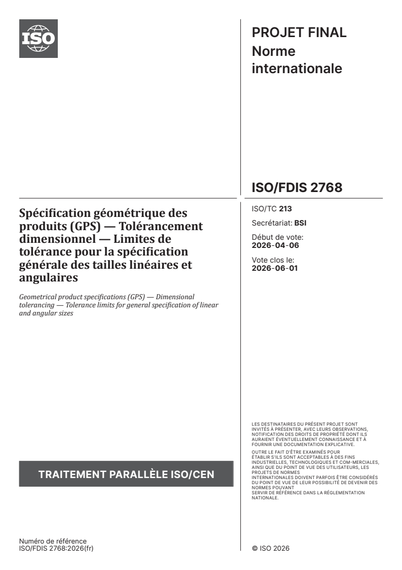PROJET FINAL Norme internationale ISO/FDIS 2768:2026(fr)