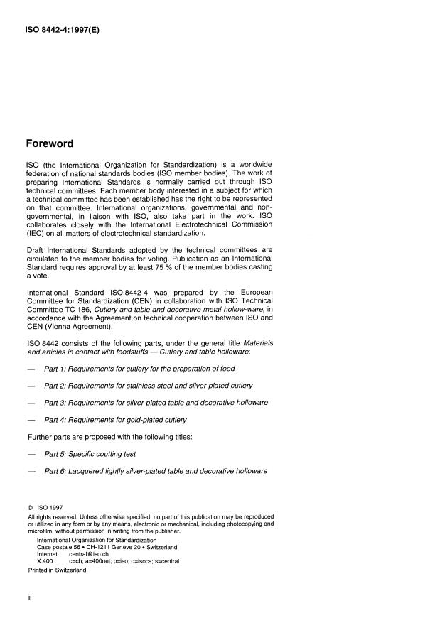 ISO 8442-4:1997 - Materials and articles in contact with foodstuffs -- Cutlery and table holloware