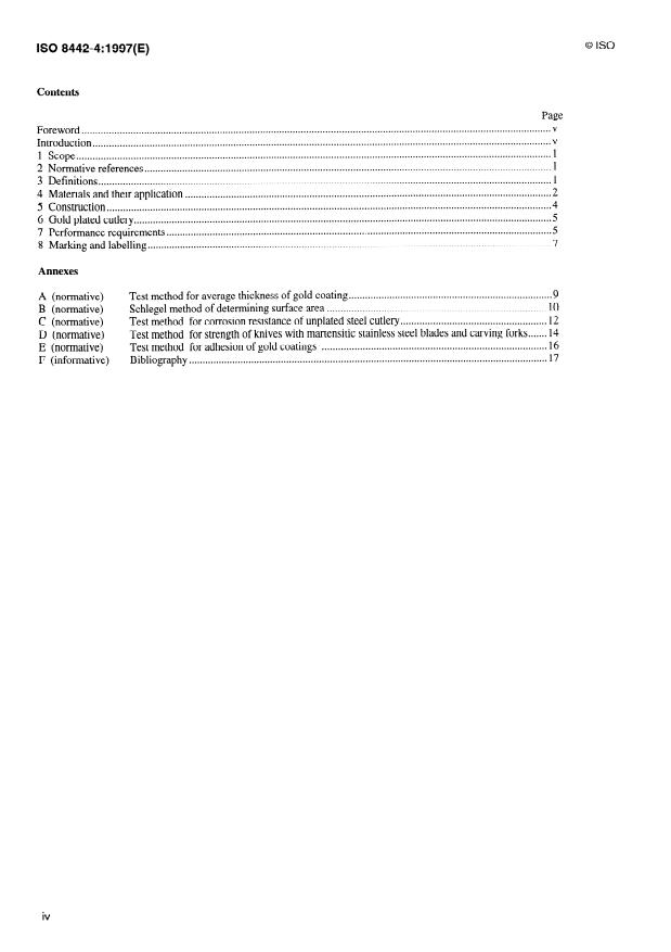 Keywords: ISO 8442-4:1997, gold plated cutlery, food contact materials, cutlery standards, gold plating thickness, corrosion resistance, coating adhesion, cutlery testing.