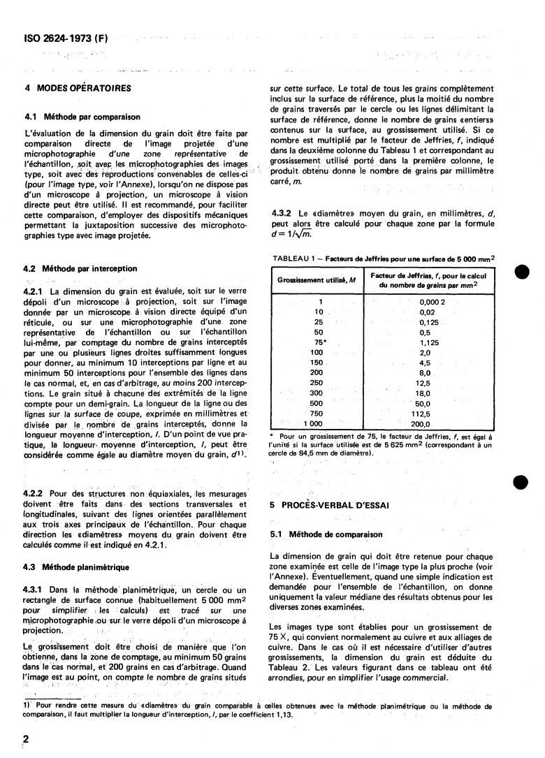 TABLEAU 1 - Facteurs de Jeffries pour une surface de 5 O00 mm2