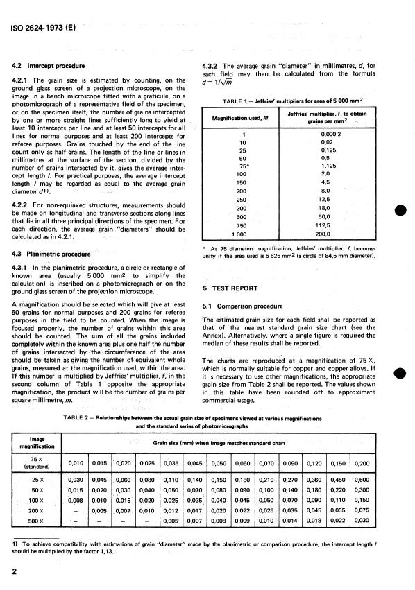 ISO 2624:1973 is a standard published by the International Organization for Standardization (ISO). Its full title is "Copper and copper alloys — Estimation of average grain size". This standard covers: Copper and copper alloys — Estimation of average grain size