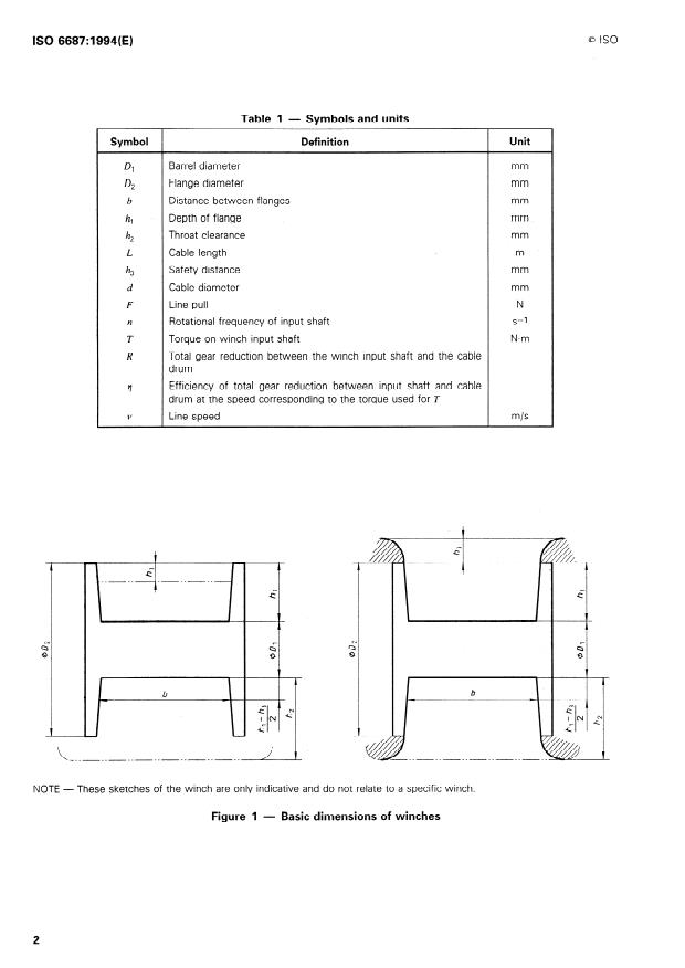 following definitions apply (see figure 1 and table 1). the barrel of the cable drum to,the winch housing at