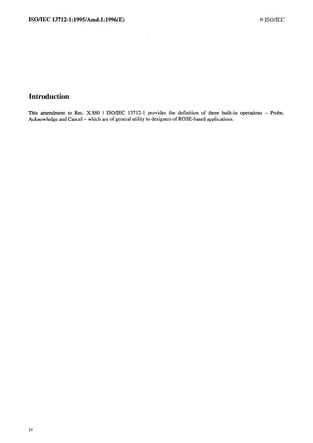 Keywords: ISO/IEC 13712-1 amendment, remote operations, ROSE, built-in operations, probe operation, acknowledge operation, cancel operation, idempotent operations, distributed systems, remote invocation, international IT standards.