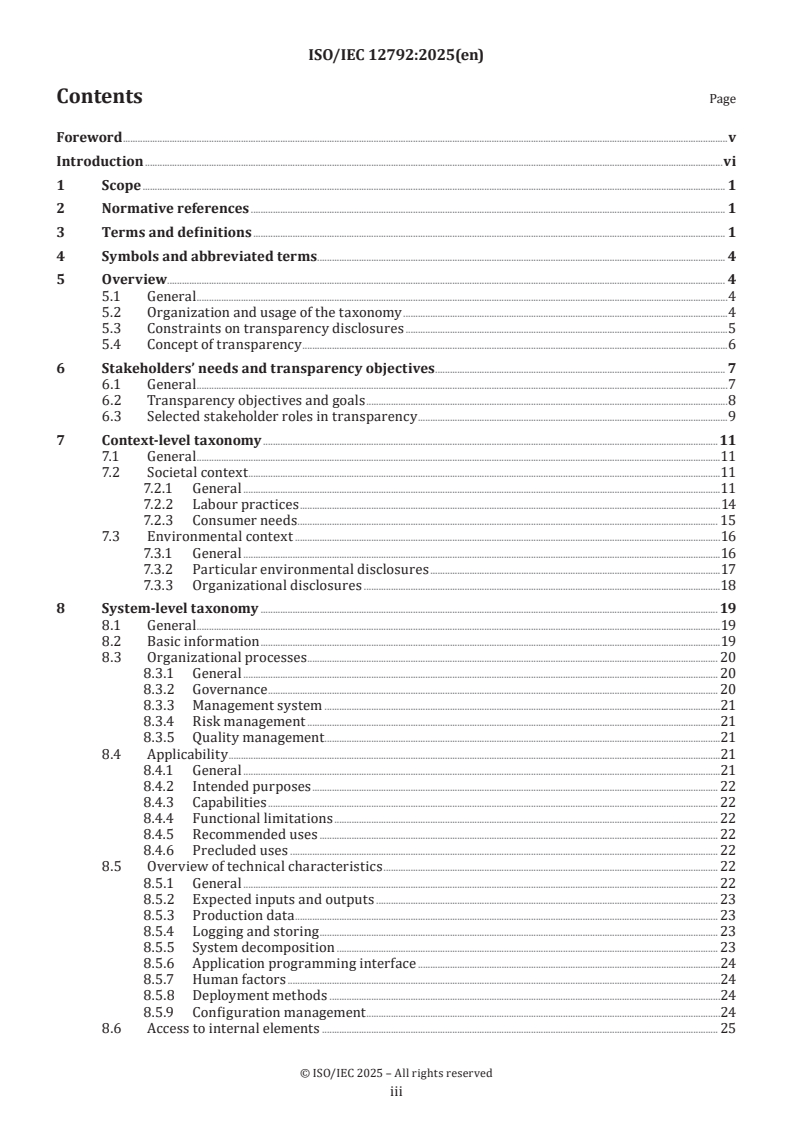 ISO/IEC 12792:2025 - Information technology — Artificial intelligence (AI) — Transparency taxonomy of AI systems Released:11. 11. 2025