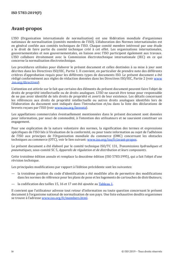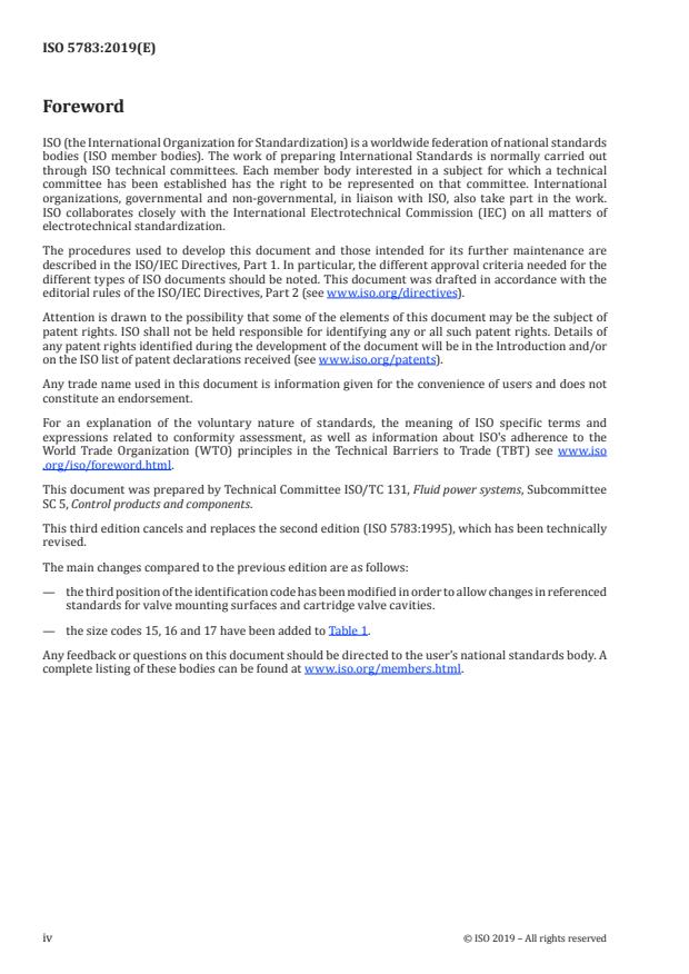 Keywords: ISO 5783:2019, hydraulic valve mounting surfaces, cartridge valve cavities, identification code, hydraulic fluid power, valve cavity code.