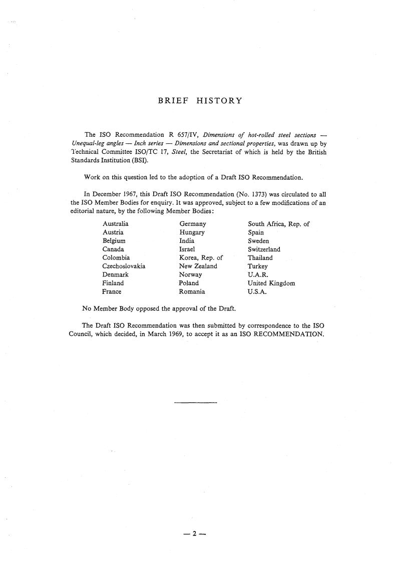 The IS0 Recommendation R 657/IV, Dimensions of hot-rolled steel sections -