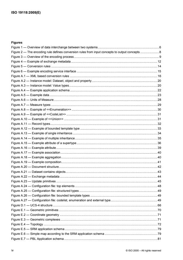 ISO 19118:2005 specifies the requirements for defining encoding rules to be used for interchange of geographic data within the ISO 19100 series of International Standards. ISO 19118:2005 specifies requirements for creating encoding rules based on UML schemas, requirements for creating encoding services, an informative XML based encoding rule for neutral interchange of geographic data. ISO 19118:2005 does not specify any digital media, it does not define any transfer services or transfer protocols, nor does it specify how to encode inline large images.