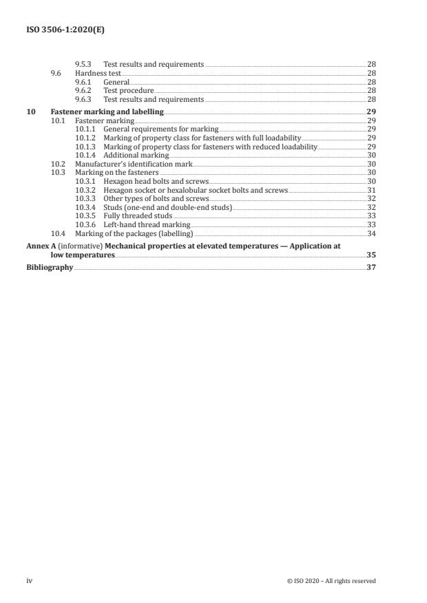 - Marking and traceability: Requirements for manufacturer identification, property‑class marking on fasteners and package labelling are defined to ensure traceability and correct selection.