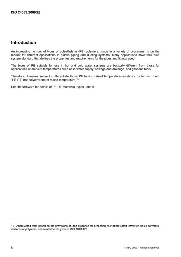 Keywords: ISO 24033:2009, PE‑RT, polyethylene of raised temperature resistance, reference lines, expected strength, hoop stress, long‑term hydrostatic strength, ISO 1167.