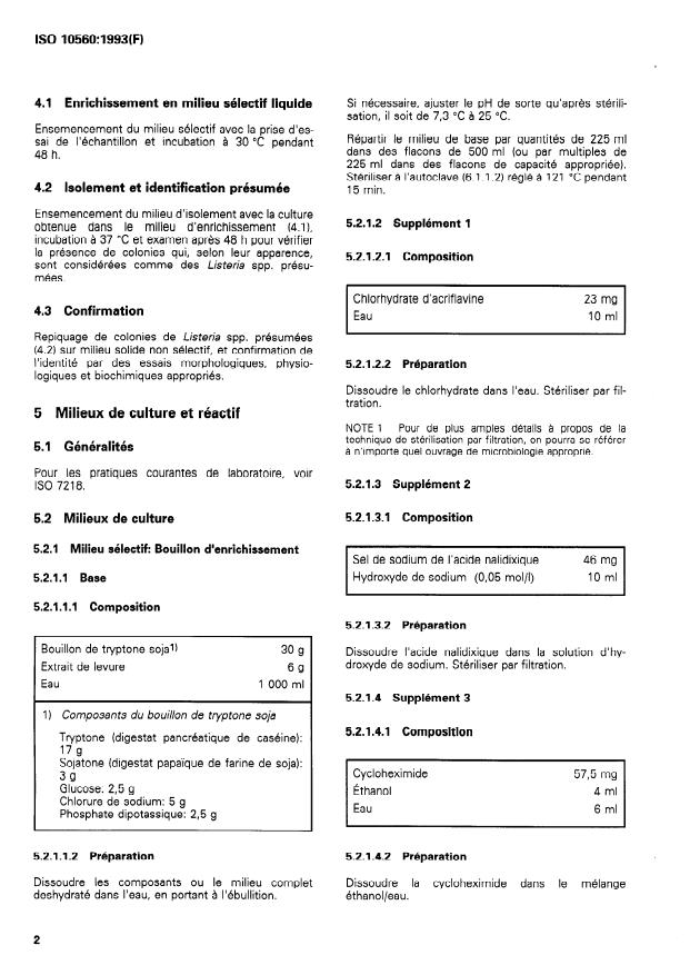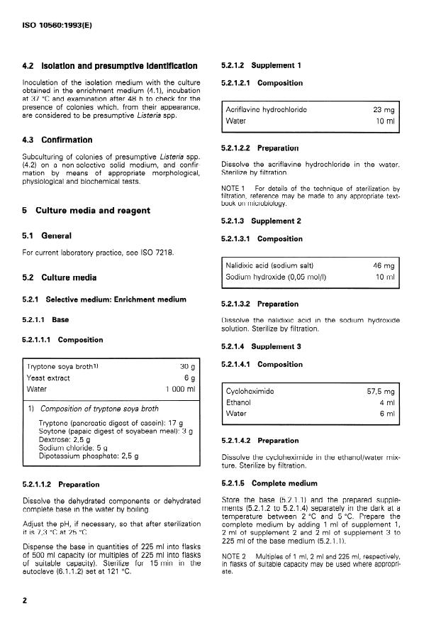 ISO 10560:1993 is a standard published by the International Organization for Standardization (ISO). Its full title is "Milk and milk products — Detection of Listeria monocytogenes". This standard covers: The principle of the method specified comprises (at least) the following three stages: enrichment in selective liquid medium, isolation and presumptive identification, confirmation.