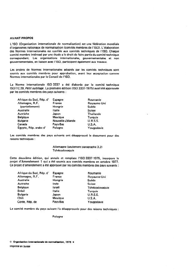 ISO/TC 29, Petit outi//age. La première édition (ISO 3337-1975) avait été approuvée