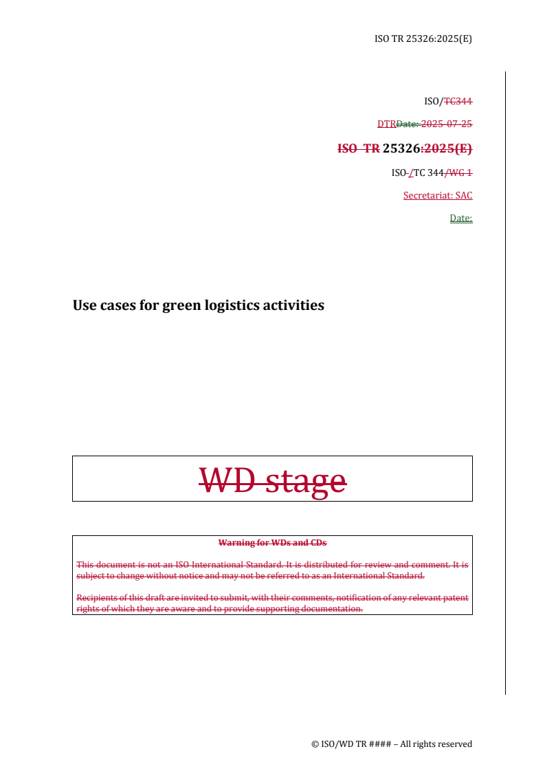 REDLINE ISO/DTR 25326 - Use cases for green logistics activities Released:10/1/2025