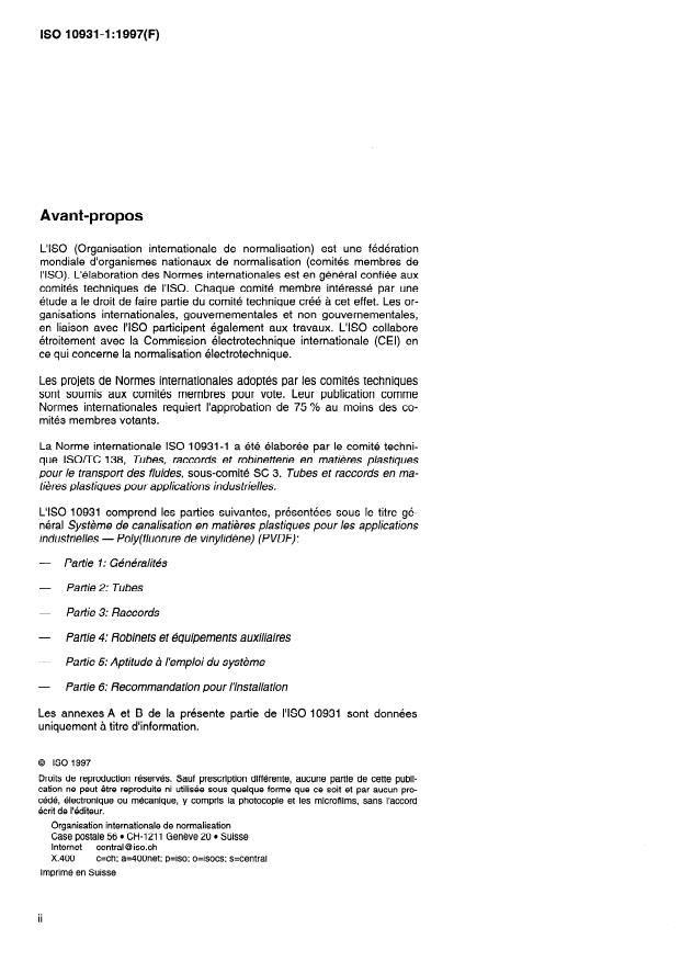 ISO 10931-1:1997 - Systemes de canalisation en matieres plastiques pour les applications industrielles -- Poly(fluorure de vinylidene) (PVDF)