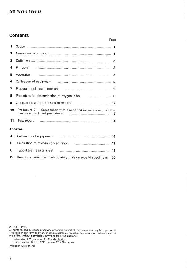 ISO 4589-2:1996 is a standard published by the International Organization for Standardization (ISO). Its full title is "Plastics — Determination of burning behaviour by oxygen index — Part 2: Ambient-temperature test". This standard covers: Plastics — Determination of burning behaviour by oxygen index — Part 2: Ambient-temperature test