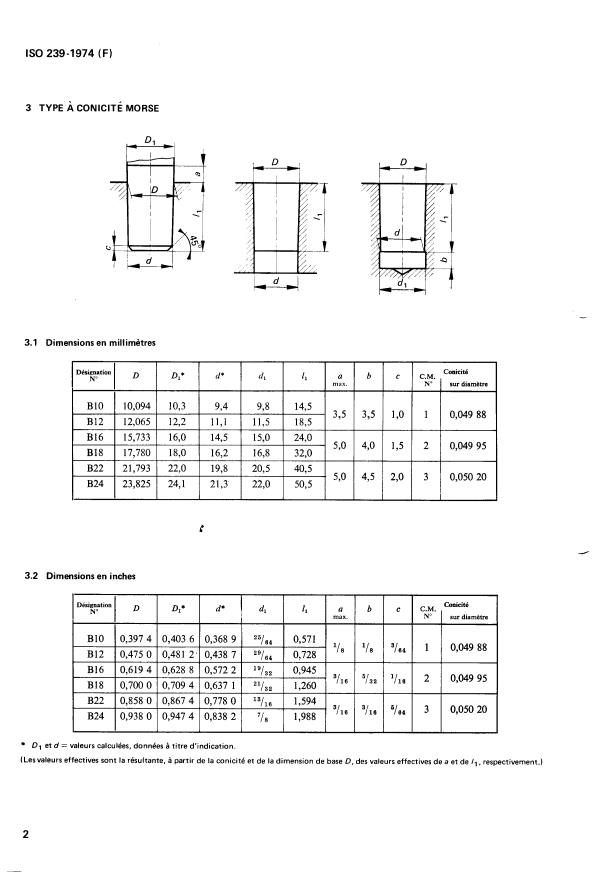 1 OBJET ET DOMAINE D'APPLICATION 2.1 Type à conicité Morse