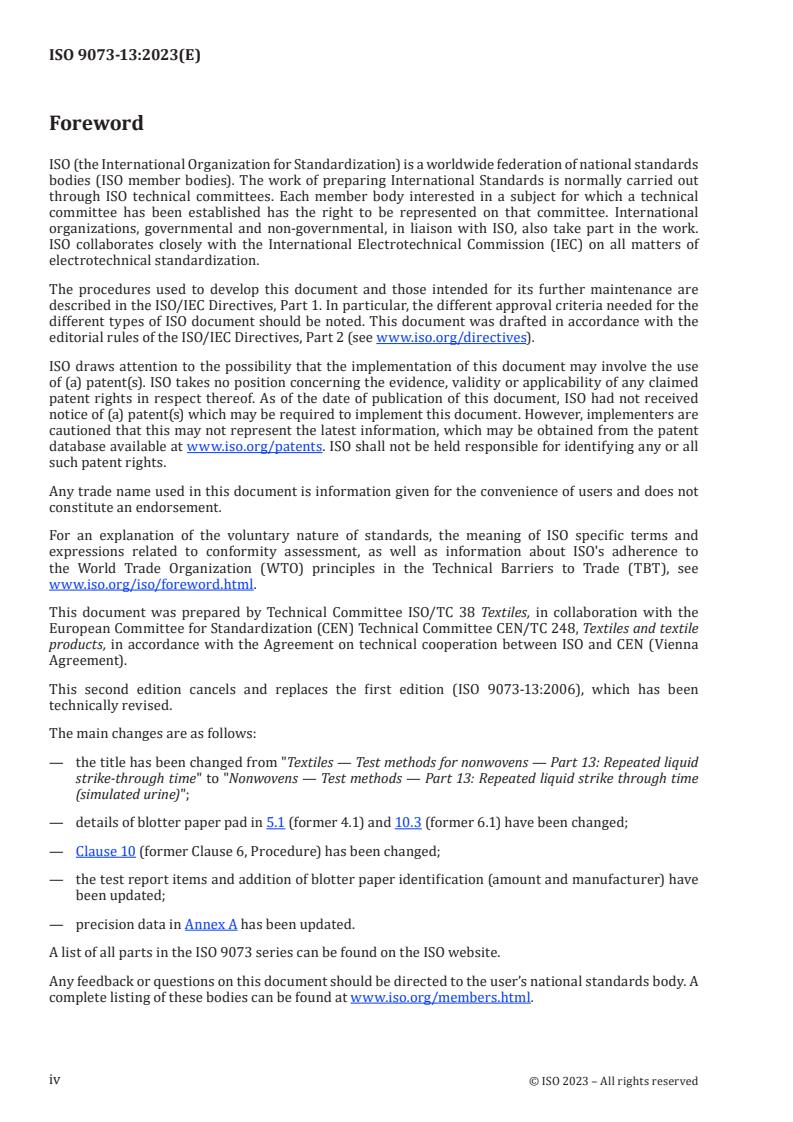 ISO 9073-13:2023 - Nonwovens — Test methods — Part 13: Repeated liquid strike-through time (simulated urine) Released:2. 06. 2023