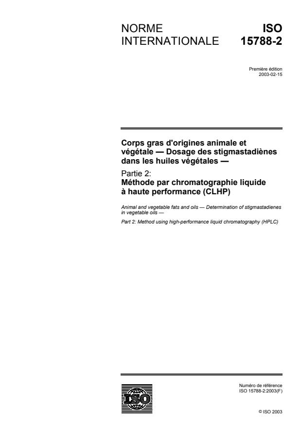 ISO 15788-2:2003 - Corps gras d'origines animale et végétale -- Dosage des stigmastadienes dans les huiles végétales