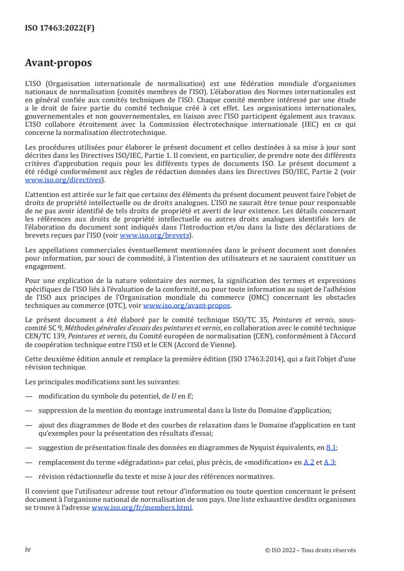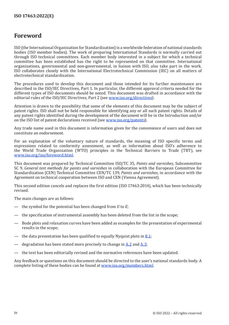 ISO 17463:2022 is a standard published by the International Organization for Standardization (ISO). Its full title is "Paints and varnishes - Guidelines for the determination of anticorrosive properties of organic coatings by accelerated cyclic electrochemical technique". This standard covers: This document gives guidelines on how to perform accelerated cyclic electrochemical technique (ACET) with organic protective coatings on metals. This document specifies the execution of an ACET test and the considerations relative to the samples and electrochemical cell, test parameters and procedure. This document also provides guidelines for the presentation of experimental results such as Bode plots and relaxation curves and other types of information obtained. Some typical examples are shown in Annex A.