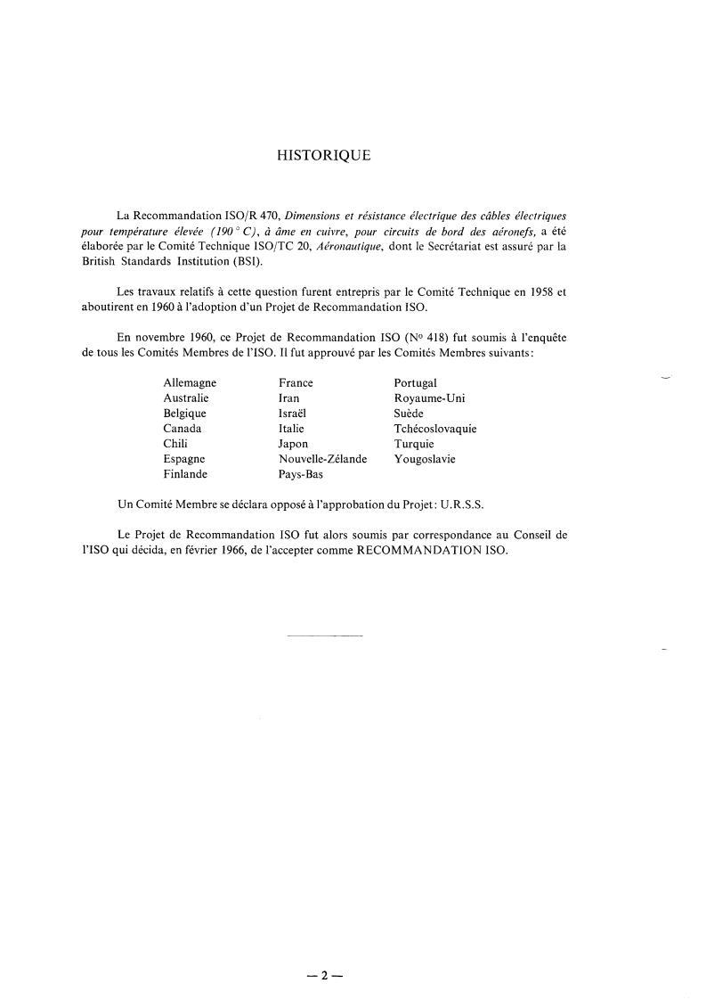 En novembre 1960, ce Projet de Recommandation IS0 (NO 418) fut soumis à l’enquête