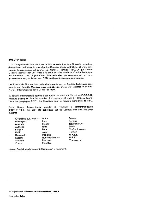 La Norme Internationale ISO 61 a été établie par le Comité Technique ISO/TC 61,