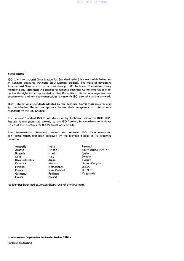 Ta slovenski standard je istoveten z: ISO 61:1976
