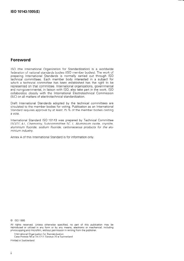 ISO 10143:1995 is a standard published by the International Organization for Standardization (ISO). Its full title is "Carbonaceous materials for the production of aluminium — Calcined coke for electrodes — Determination of the electrical resistivity of granules". This standard covers: Describes a method for the determination of the electrical resistivity of granular carbon (calcined or graphitized) used in the manufacture of carbon electrode for the production of aluminium.