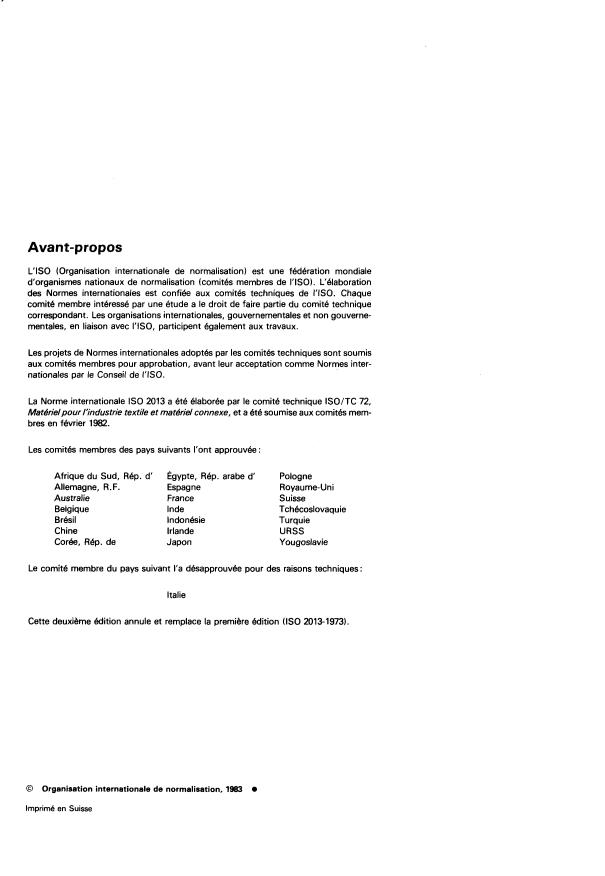 International Standard IS0 2013 was developed by Technical Committee ISO/TC 72,