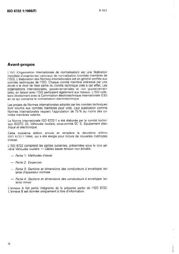 ISO 6722-1:1996 - Véhicules routiers -- Câbles basse tension non blindés