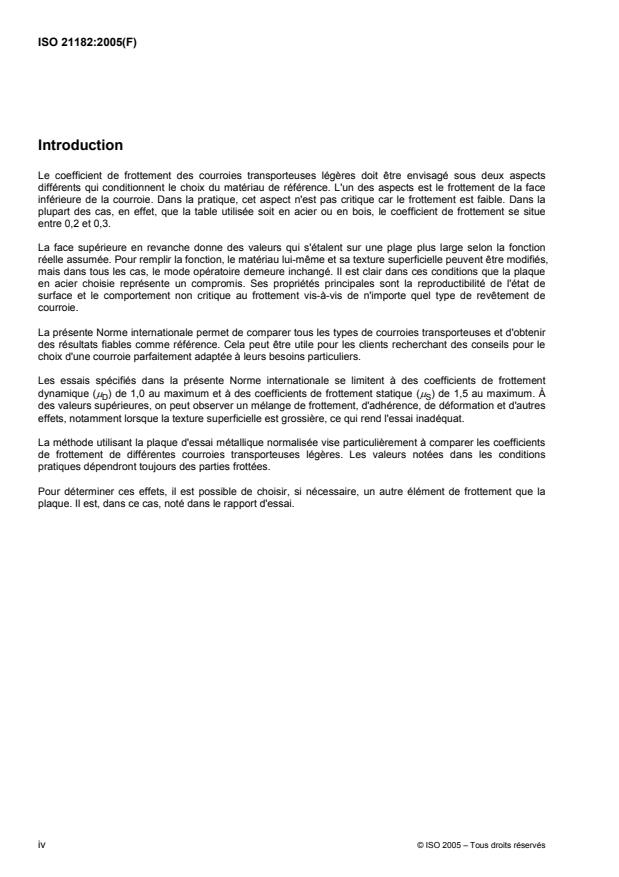 ISO 21182:2005 - Courroies transporteuses légeres -- Détermination du coefficient de frottement