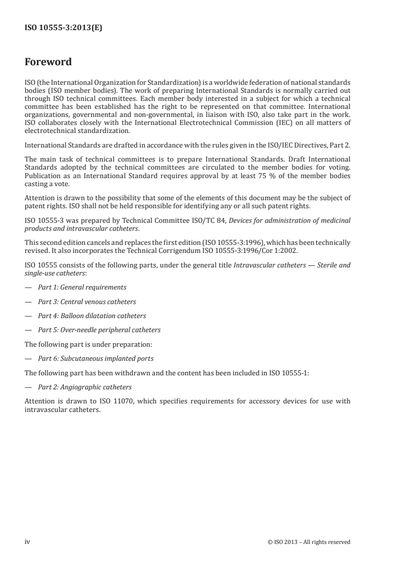 - Other parts of ISO 10555 (Part 4: balloon dilatation catheters; Part 5: over-needle peripheral catheters; Part 6 under preparation)