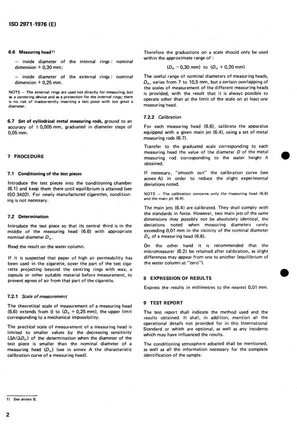 ISO 2971:1976 - Tobacco and tobacco products -- Cigarettes and filters -- Determination of nominal diameter