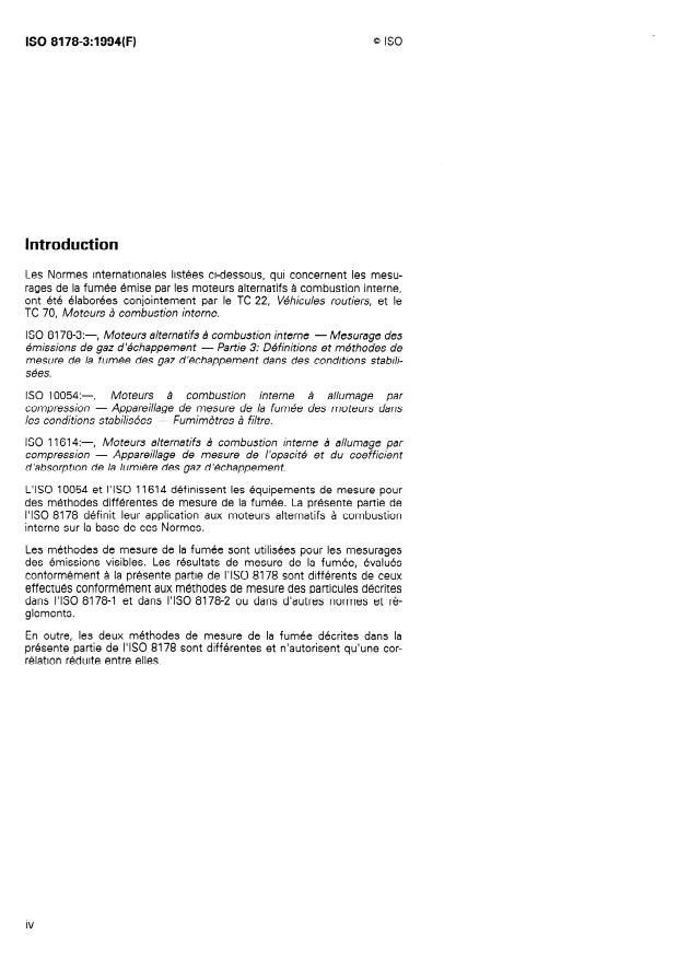 mesurage des émissions de fumées d’échappement ISO 11614:-*), Moteurs alterna tifs à combustion
