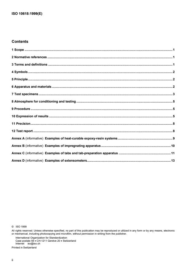 ISO 10618:1999 is a standard published by the International Organization for Standardization (ISO). Its full title is "Carbon fibre — Determination of tensile properties of resin-impregnated yarn". This standard covers: La présente Norme internationale spécifie une méthode d'essai pour la détermination de la résistance en traction, du module d'élasticité en traction, et de la déformation à la charge maximale sur une éprouvette de fil imprégné de résine. La méthode s'applique à des fils (continus ou discontinus) de carbone utilisés pour le renforcement des matériaux composites.Le module d'élasticité en traction est calculé suivant la méthode A ou la méthode B ; les valeurs obtenues par les deux méthodes peuvent être différentes.
