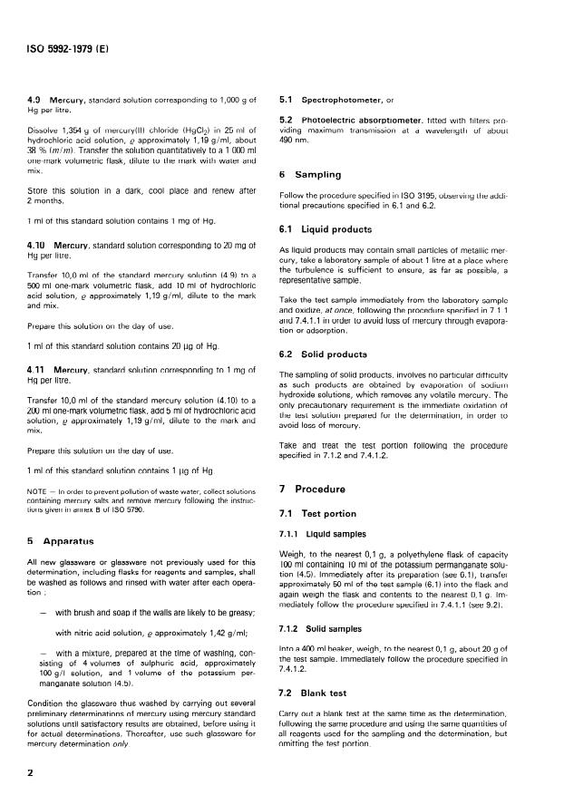 ISO 5992:1979 - Sodium hydroxide for industrial use -- Determination of mercury content -- Dithizone photometric method