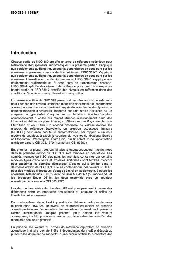 ISO 389-1:1998 is a standard published by the International Organization for Standardization (ISO). Its full title is "Acoustics — Reference zero for the calibration of audiometric equipment — Part 1: Reference equivalent threshold sound pressure levels for pure tones and supra-aural earphones". This standard covers: La présente partie de l'ISO 389 prescrit un zéro normal de référence pour l'échelle des niveaux liminaires d'audition, applicable aux audiomètres à sons purs en conduction aérienne, en vue de promouvoir la concordance et l'uniformité d'expression des mesurages des niveaux liminaires d'audition dans le monde.Elle expose les données sous une forme se prêtant à leur application directe et à l'étalonnage des audiomètres, c'est-à-dire sous forme de réponse de deux modèles types d'écouteurs, mesurés sur un coupleur selon la CEI 60303, et sous forme d'autres écouteurs supra-auraux dont les caractéristiques sont prescrites en 4.3 et mesurées sur une oreille artificielle conformément à la CEI 60318.La présente Norme internationale est basée sur l'évaluation des informations recueillies auprès de divers laboratoires d'étalonnage responsables de normes audiométriques et extraites de publications scientifiques.Des commentaires sur la détermination et l'application des niveaux de référence recommandés sont donnés dans l'annexe A.