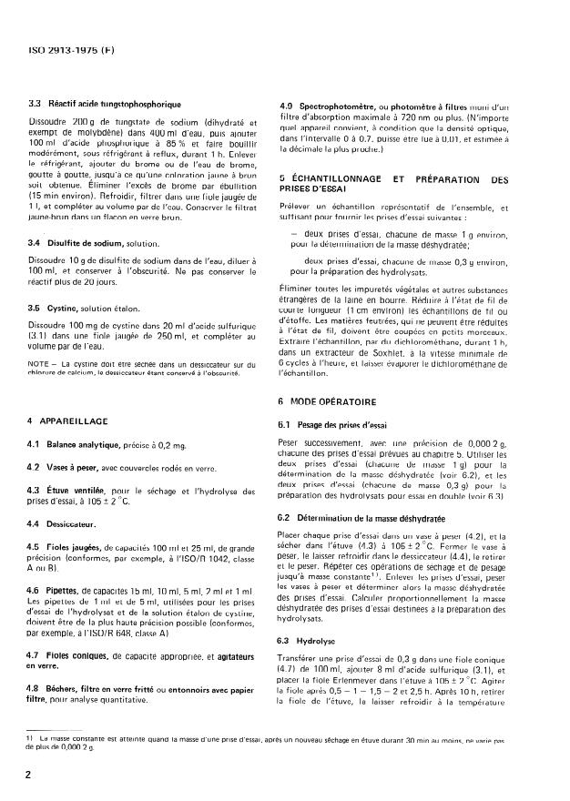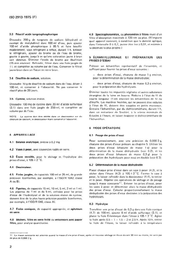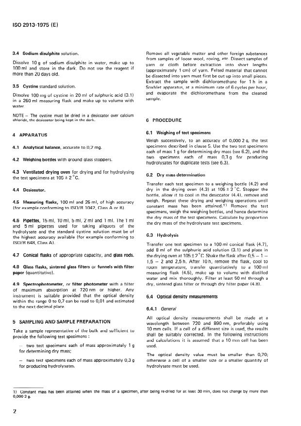 Overview - ISO 2913:1975 (Wool - colorimetric determination of cystine + cysteine in hydrolysates)