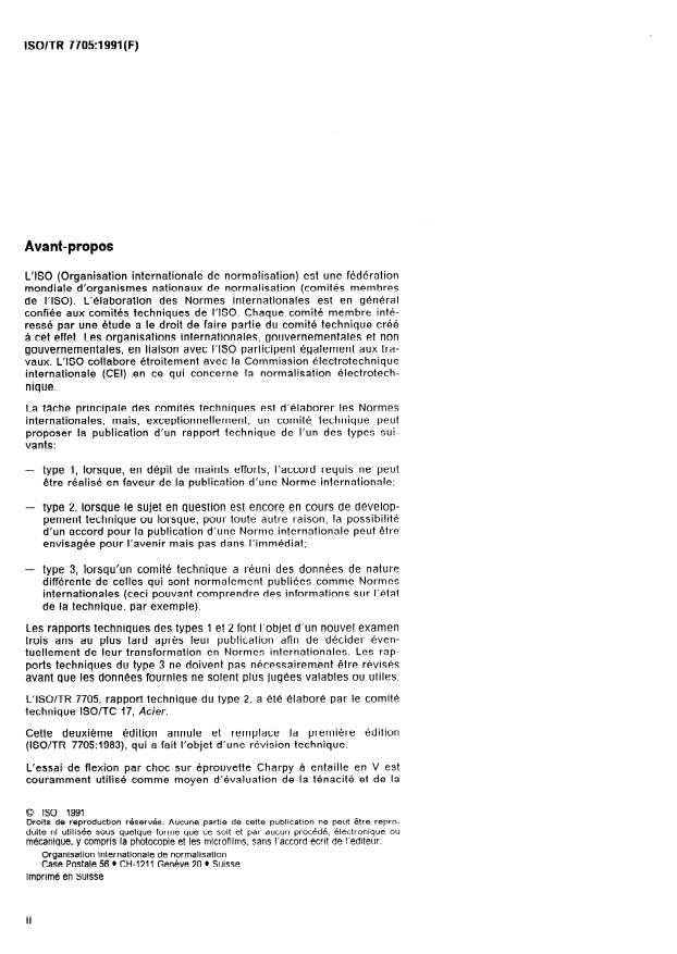 ISO/TR 7705:1991 - Directives pour la spécification des prescriptions d'énergie de rupture sur éprouvette Charpy a entaille en V dans les normes d'acier
