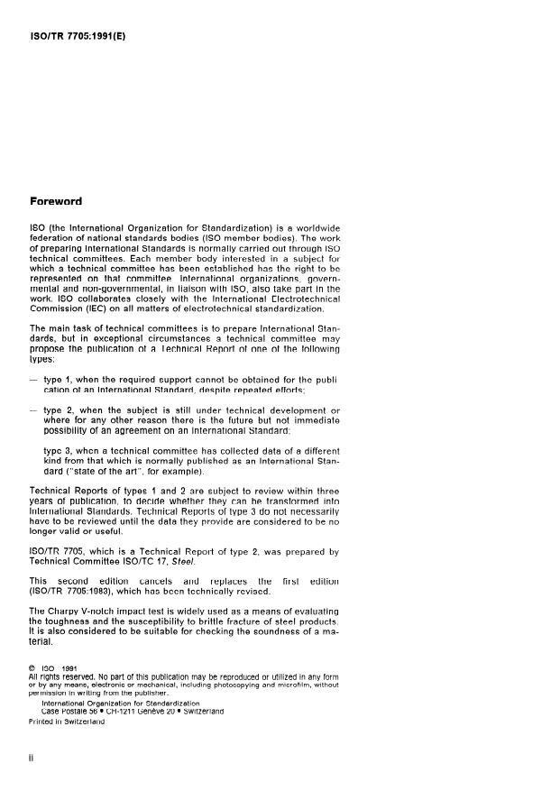ISO/TR 7705:1991 - Guidelines for specifying Charpy V-notch impact prescriptions in steel specifications